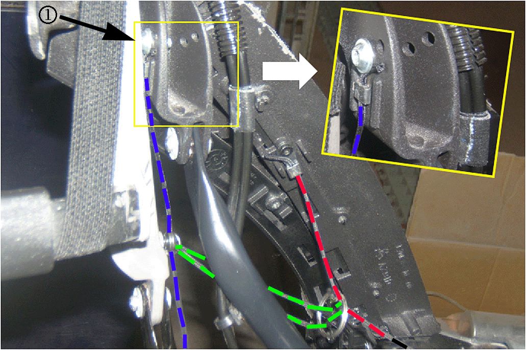 Whether first or second design, when attaching the third D-ring, ensure that the string is routed underneath the rear counterbalance link, as shown earlier in Figure 2.