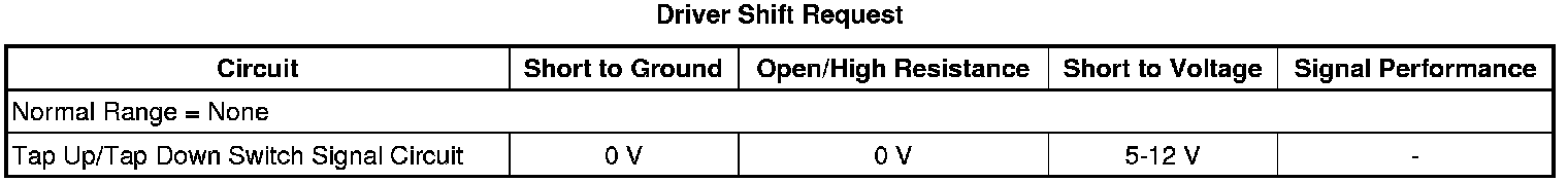 The TCM detects an invalid voltage on the TAP up/down signal circuit for 8 seconds.