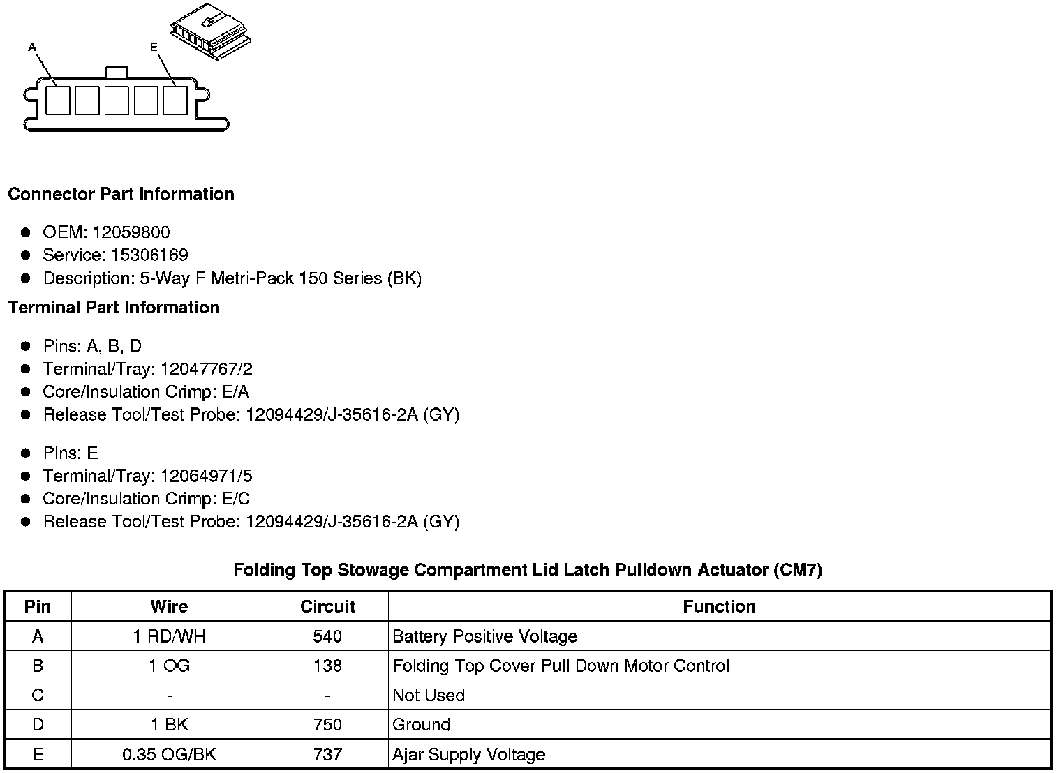 Folding Top Stowage Compartment Lid Latch Pulldown Actuator (CM7)