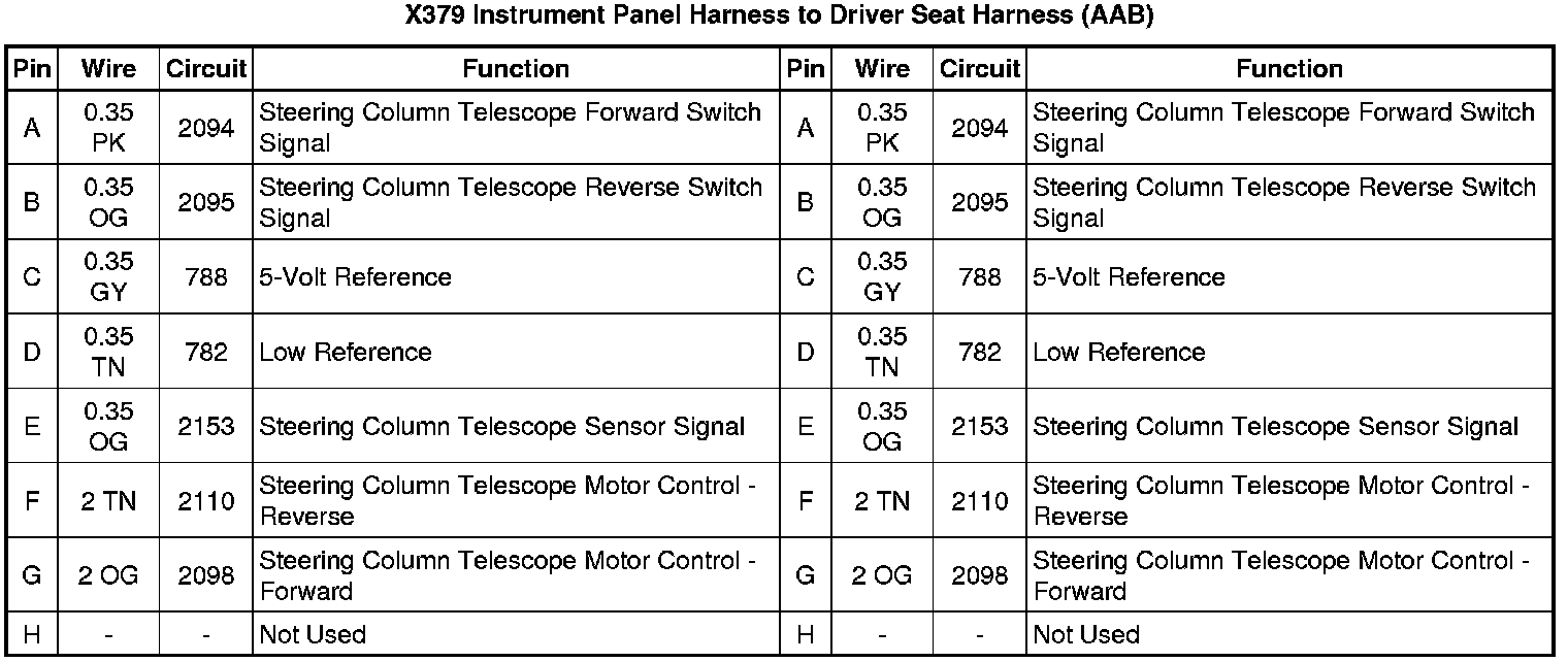 X379 Instrument Panel Harness to Driver Seat Harness (AAB)