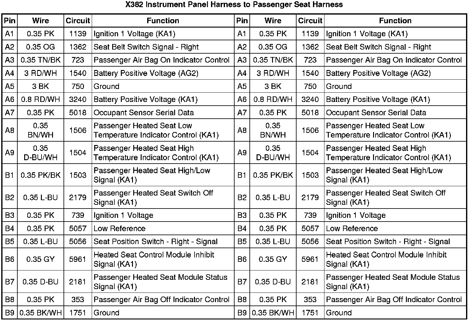 X382 Instrument Panel Harness to Passenger Seat Harness