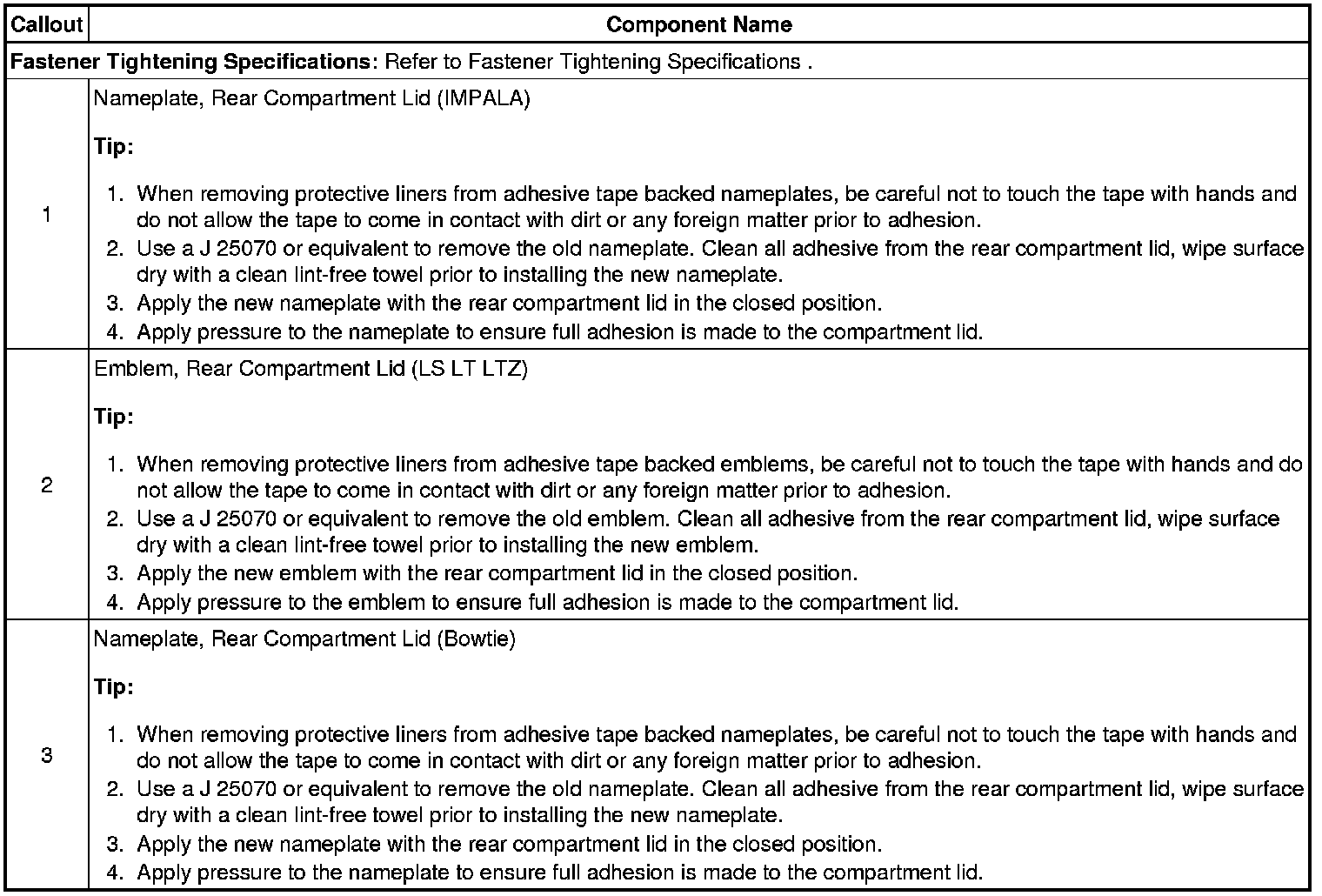 Rear Compartment Lid Emblem/Nameplate Replacement (Impala Base/Uplevel)