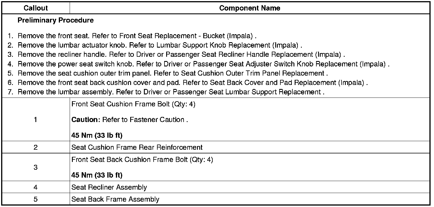 Driver or Passenger Seat Back Cushion Frame Replacement