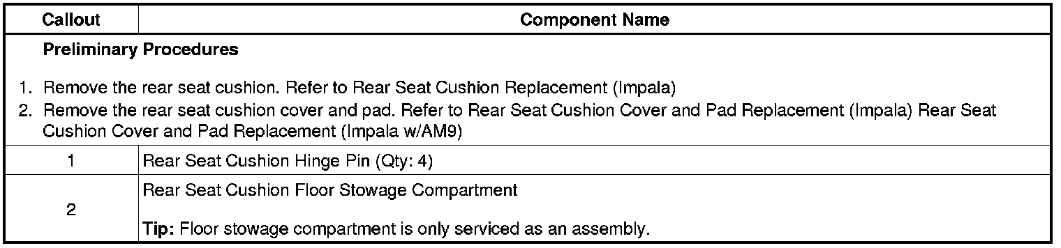 Rear Seat Cushion Floor Stowage Compartment Replacement (Impala w/AM9)