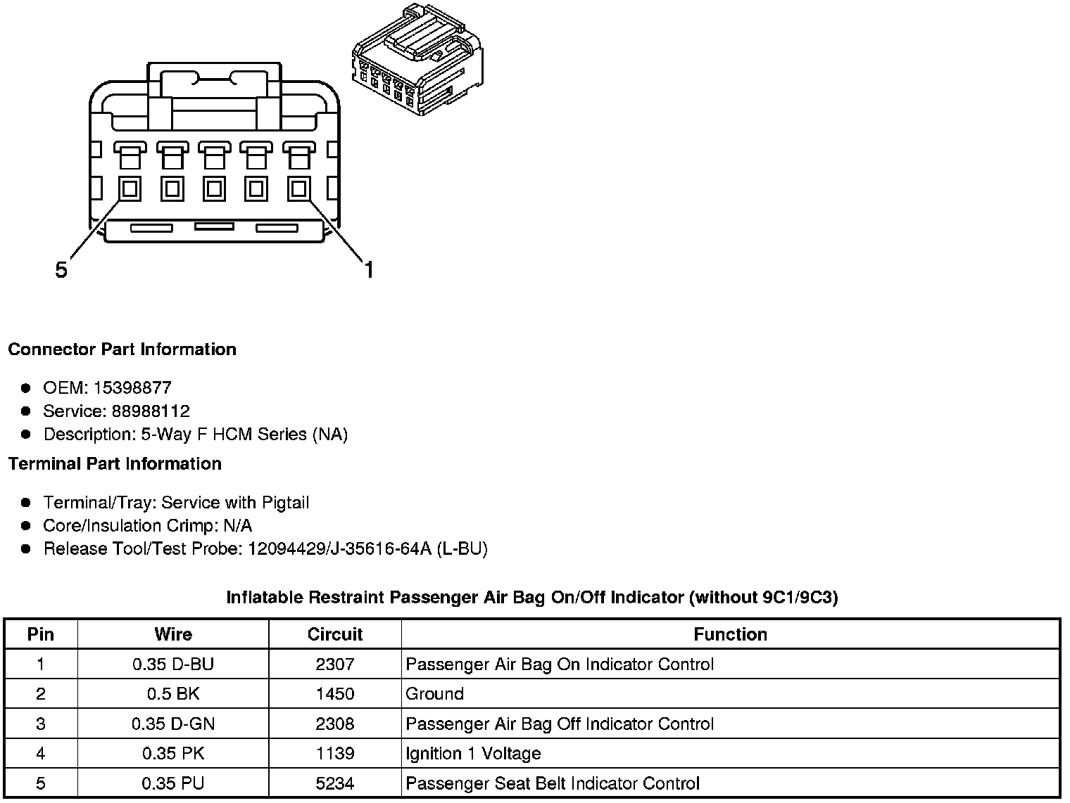 Inflatable Restraint Passenger Air Bag On/Off Indicator (without 9C1/9C3)