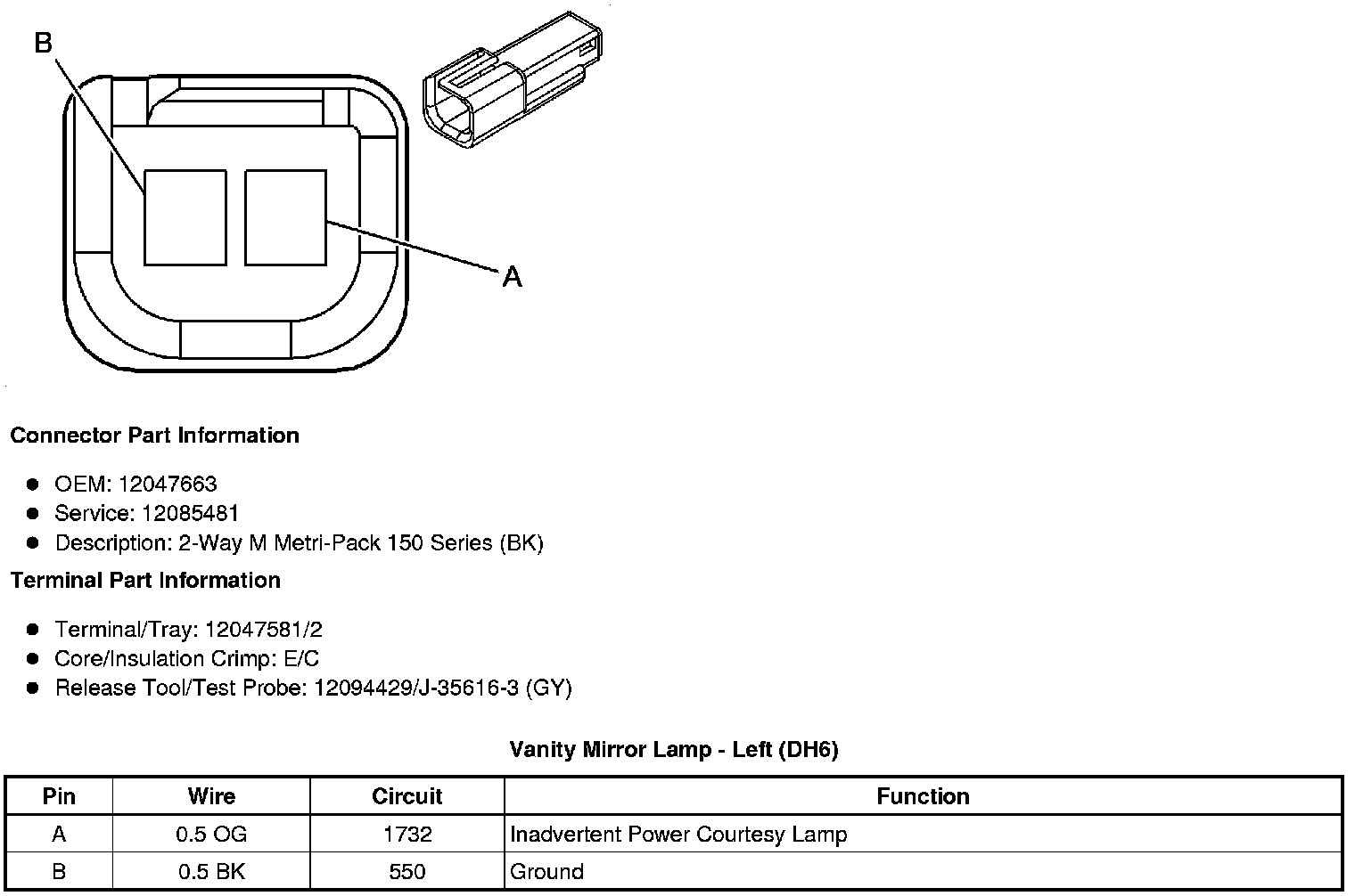 Vanity Mirror Lamp - Left (DH6)