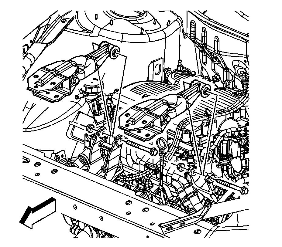 4. Tighten the engine mount strut to engine mount strut bracket bolts/nuts.