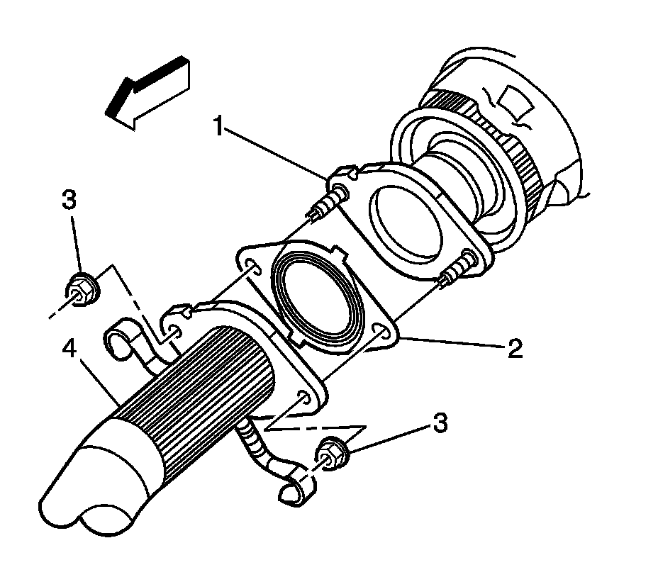 3. Remove and discard the catalytic converter to muffler gasket (2).