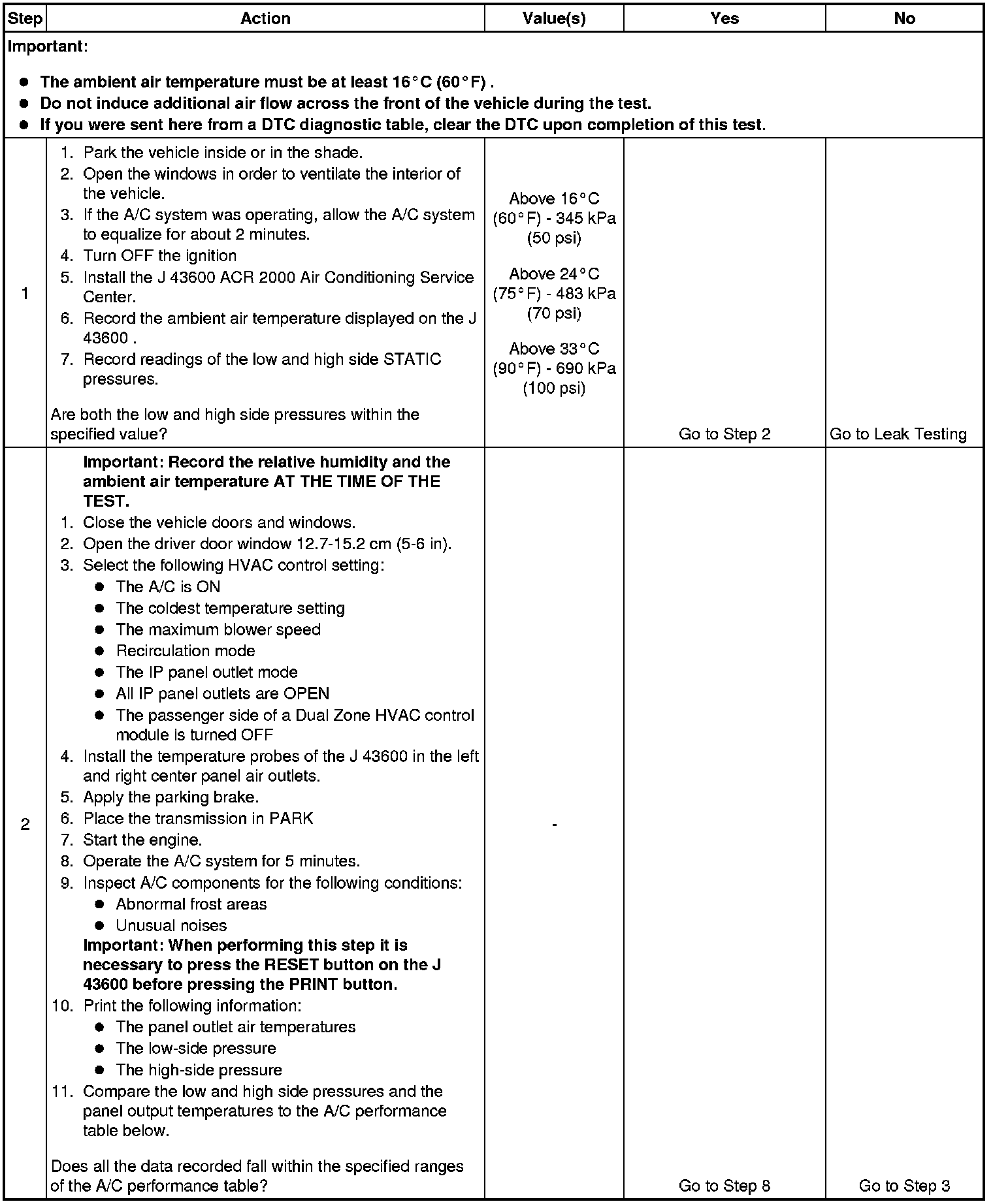 1. This step determines if the A/C system has at least the minimum refrigerant charge required to operate the system without damage.