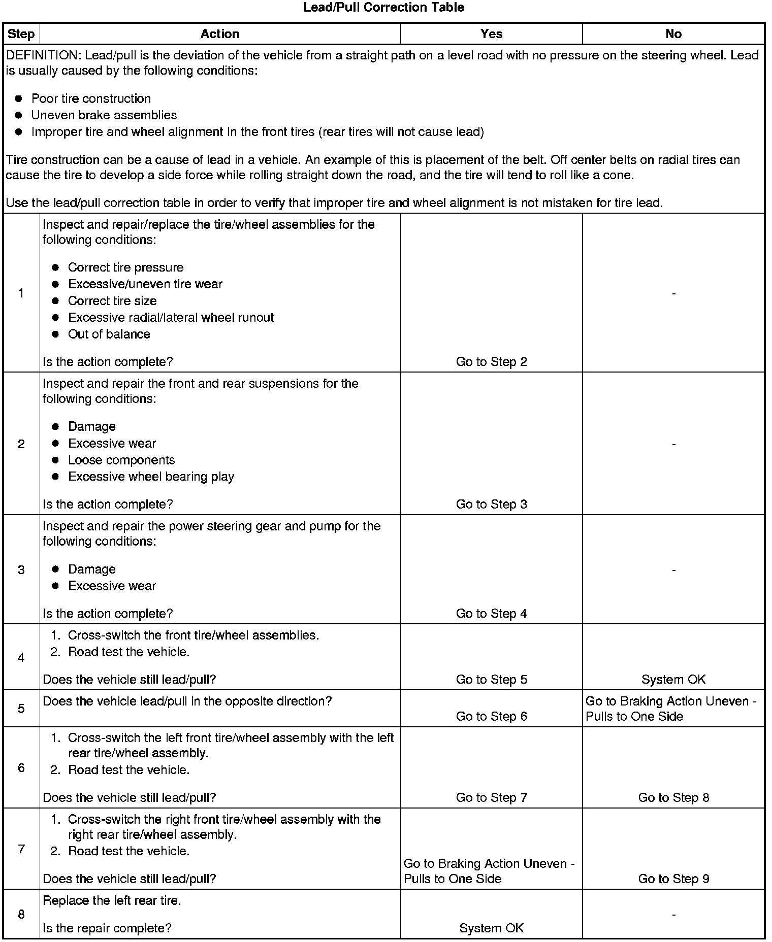 Radial Tire Lead/Pull Correction