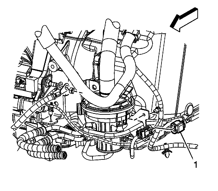 5. Disconnect the engine wiring harness electrical connector (1) from the AIR pump wiring harness electrical connector.