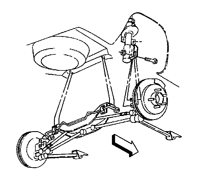 6. Remove the stabilizer shaft from the rear suspension support. Refer to Stabilizer Shaft Replacement (Rear Suspension).