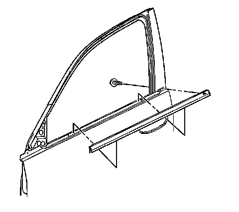1. Position the front door outer belt sealing strip to the front door pinch-weld flange.