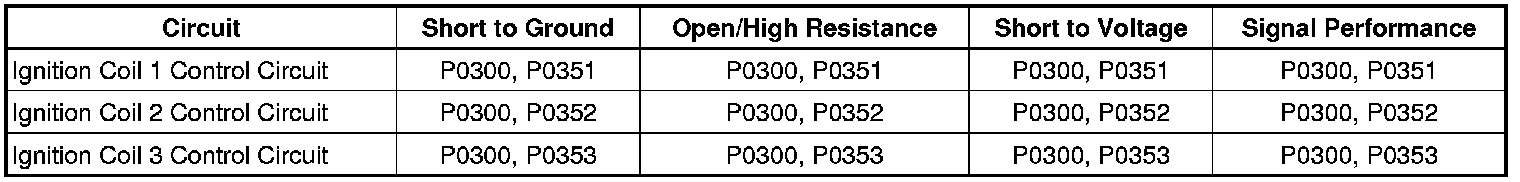 The engine control module (ECM) controls each ignition coil by transmitting timing pulses to the ICM on each of the ignition coil control circuits to enable properly timed spark events. The ignition coil 1 controls spark for companion cylinders 1 and 4. The ignition coil 2 controls spark for companion cylinders 2 and 5. The ignition coil 3 controls spark for companion cylinders 3 and 6.