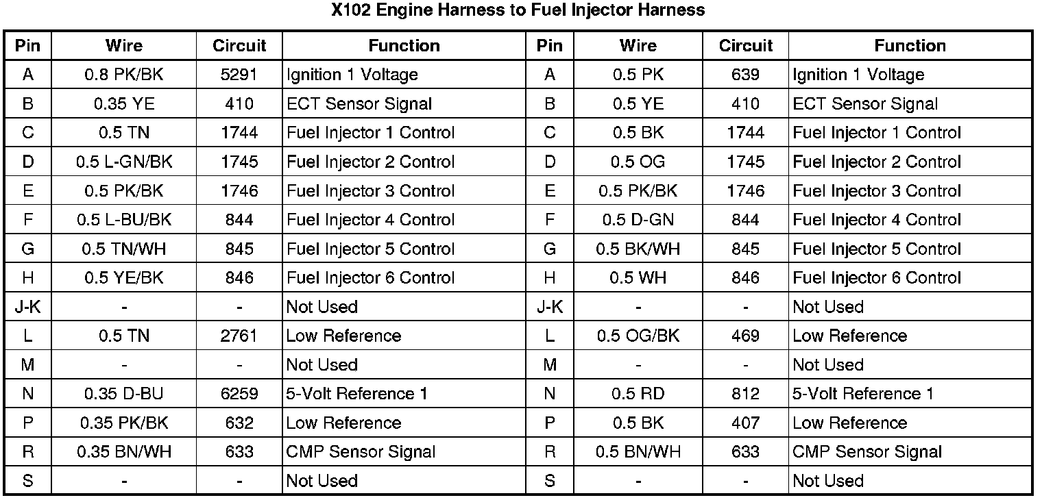 X102 Engine Harness to Fuel Injector Harness