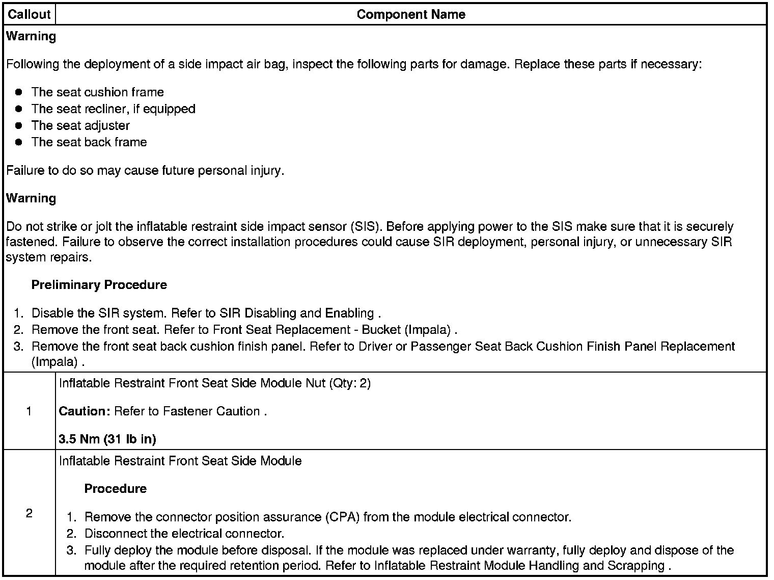 Driver or Passenger Seat Side Inflatable Restraint Module Replacement