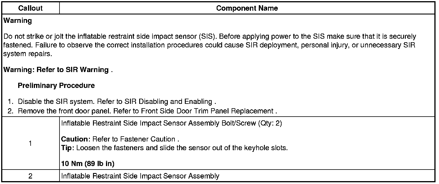 Inflatable Restraint Side Impact Sensor Replacement