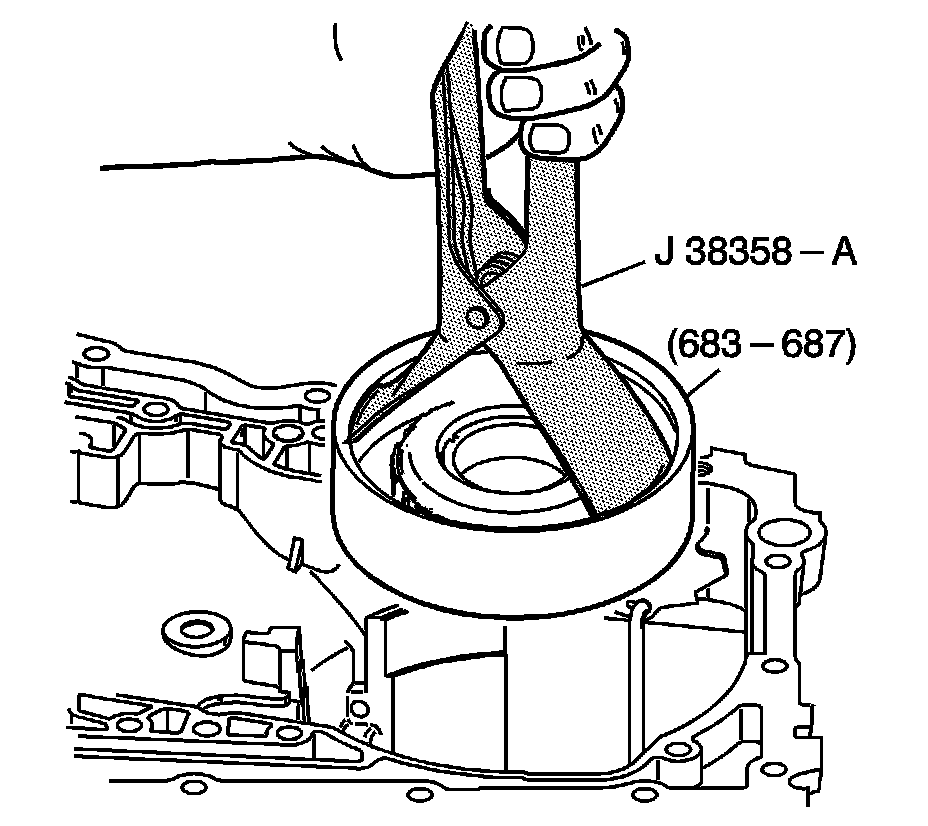 Use J 38358-A - remover/installer in order to assemble the 1-2 support drum assembly (683-687) into the case.