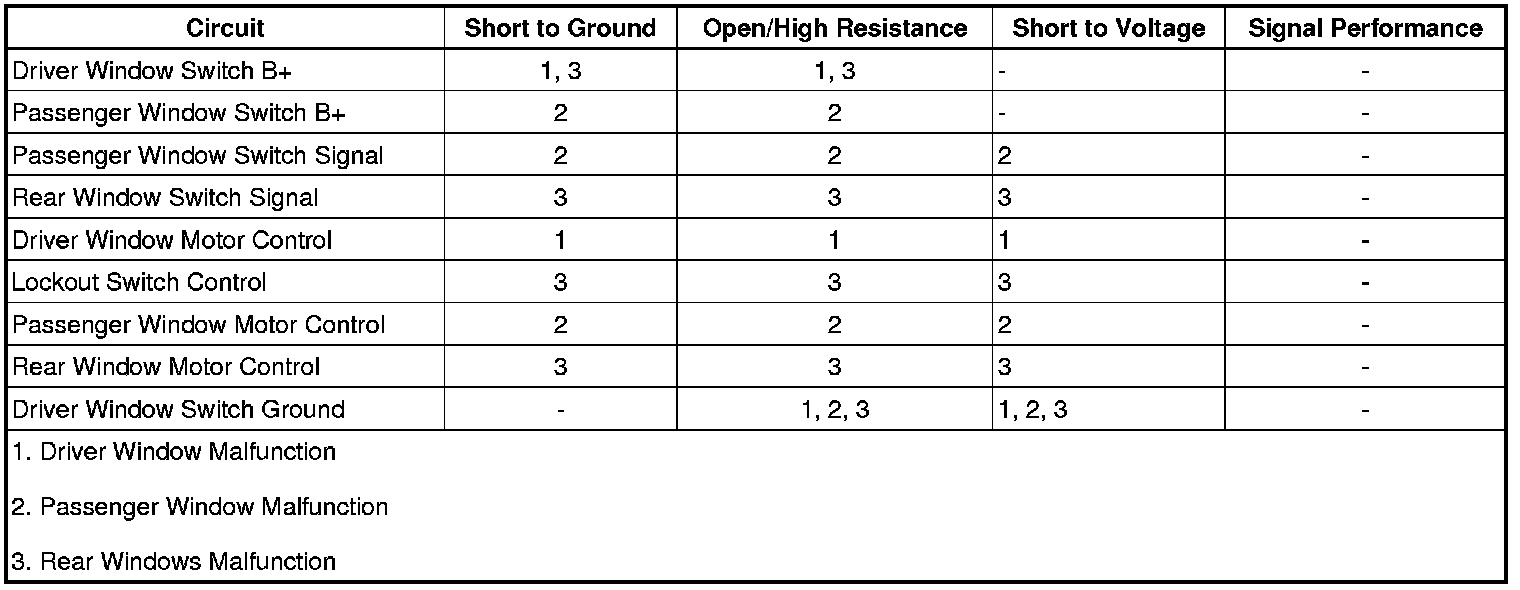 4. If all circuits test normal, test or replace the driver window switch.
