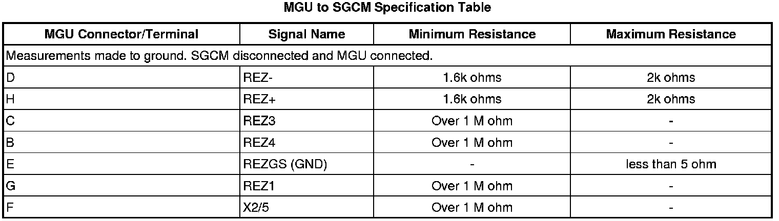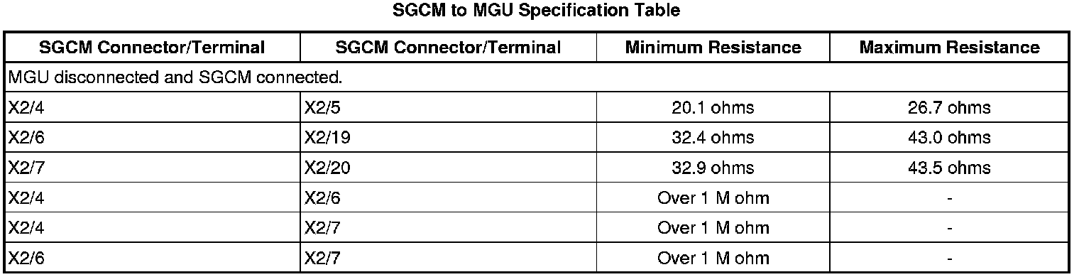 2. Test the circuits in the SGCM to MGU Terminal Reference Table as indicated below. Also test these circuits for short to ground.