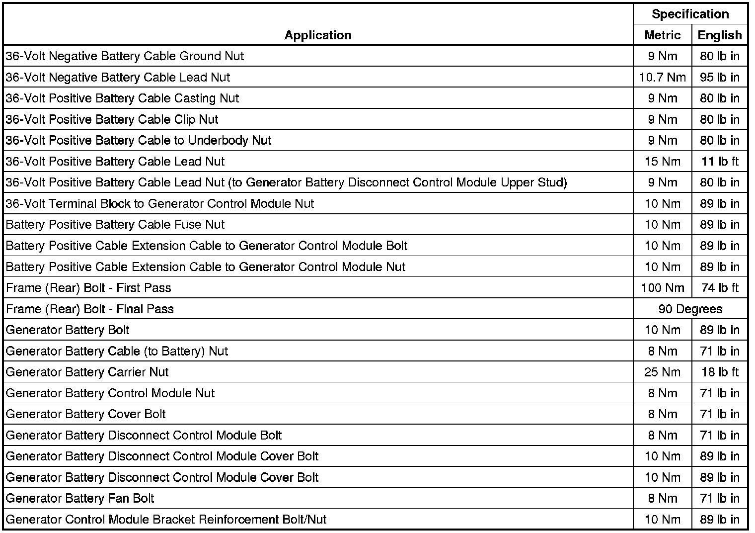 Fastener Tightening Specifications