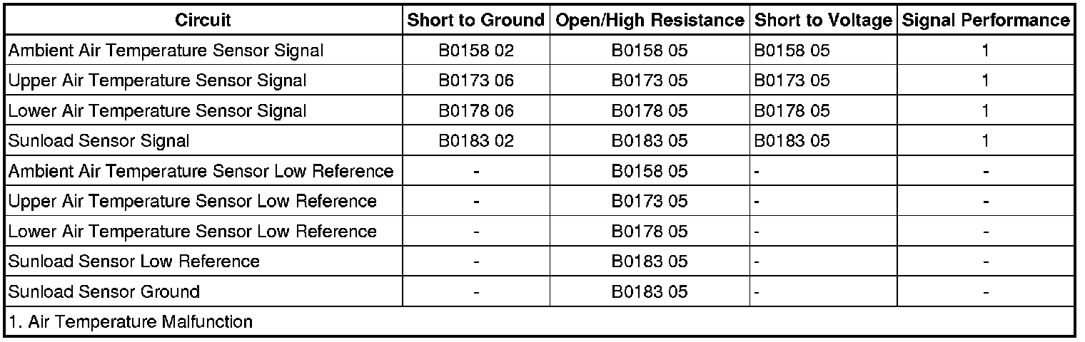 - Solar Load Sensor 1 Circuit Short to Ground