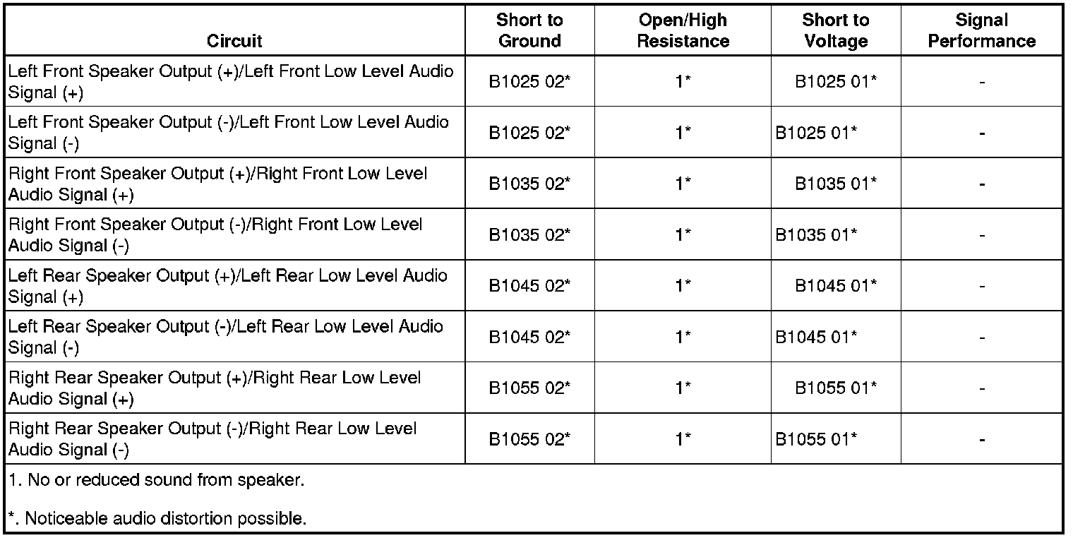The DTC will set when the radio detects a short to voltage or a short to ground in any of the low level audio signal circuits (+) and (-).