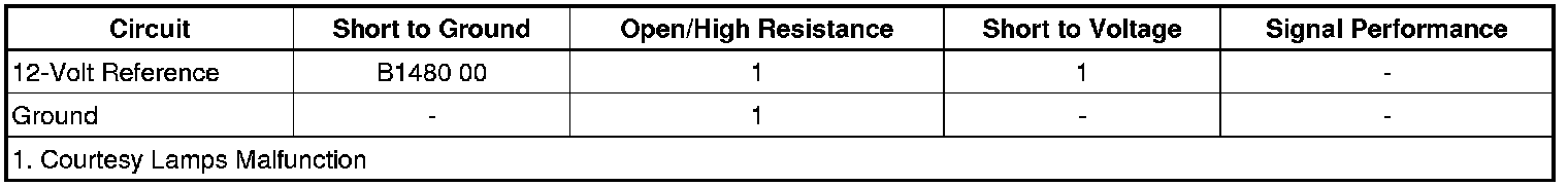 Battery voltage is applied at all times to the body control module (BCM) from the INT LAMPS Fuse located in the rear fuse block. The BCM then applies this voltage to the following lamps: