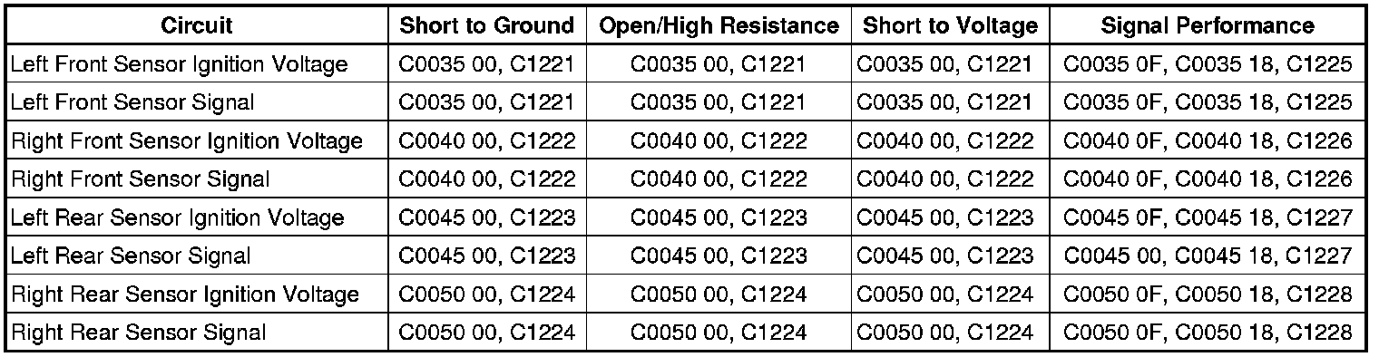 * A short to ground or an open/high resistance is detected on the wheel speed sensor ignition voltage circuit.