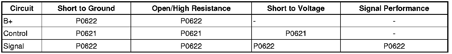 The ECM detects high or low voltage on the generator turn on control circuit for 15 seconds.