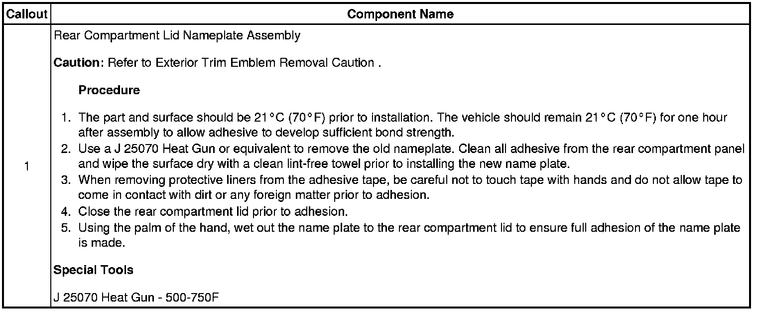 Rear Compartment Lid Emblem/Nameplate Replacement