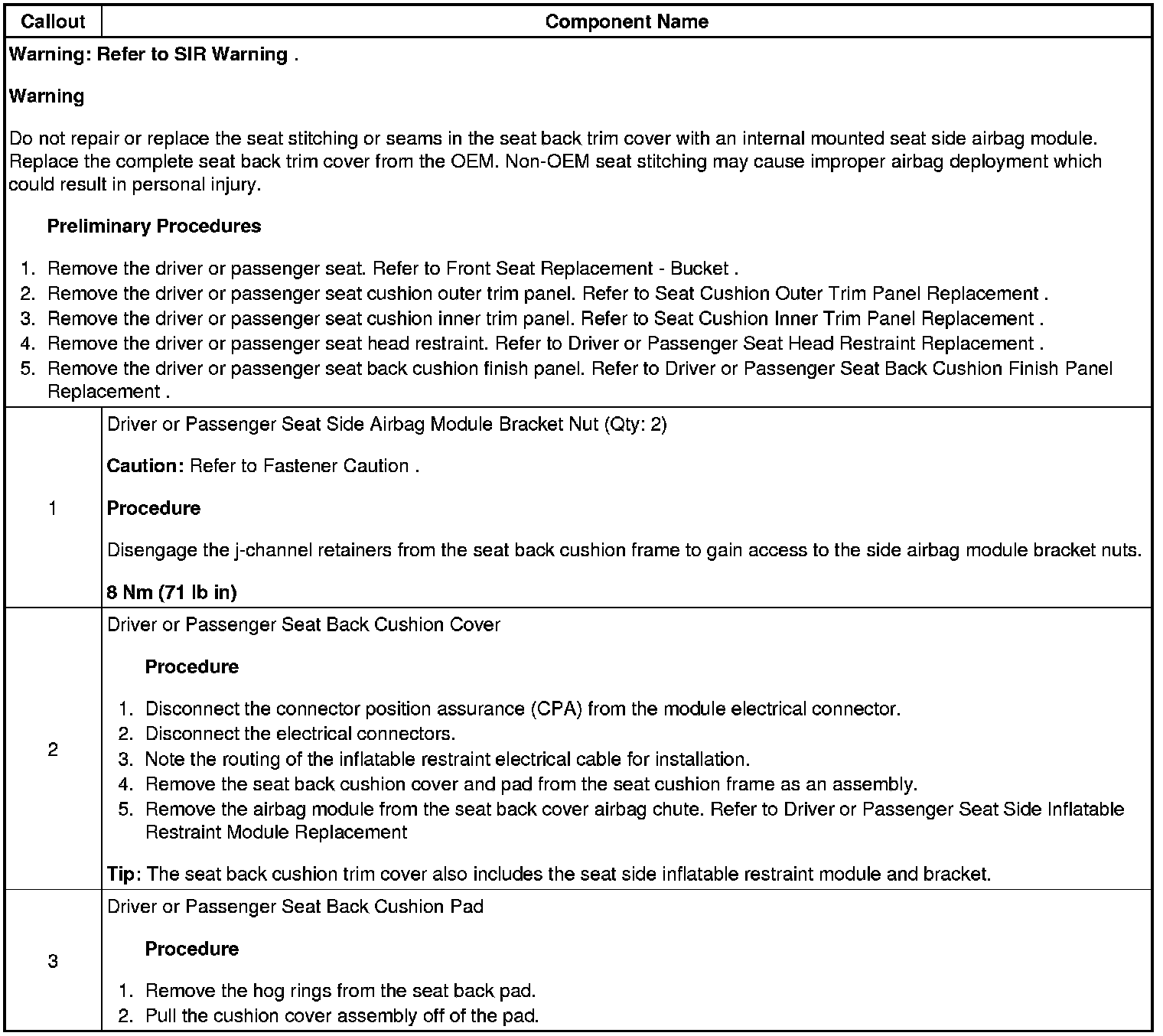 Driver or Passenger Seat Back Cushion Cover and Pad Replacement