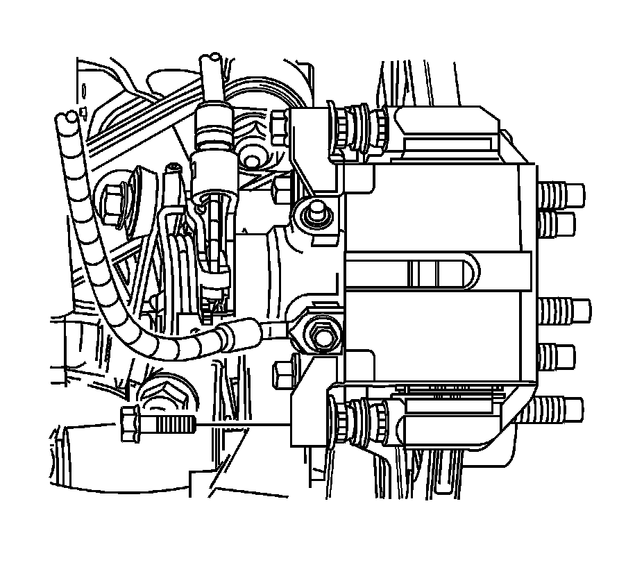 Caution: Support the brake caliper with heavy mechanic wire, or equivalent, whenever it is separated from its mount and the hydraulic flexible brake hose is still connected. Failure to support the caliper in this manner will cause the flexible brake hose to bear the weight of the caliper, which may cause damage to the brake hose and in turn may cause a brake fluid leak.