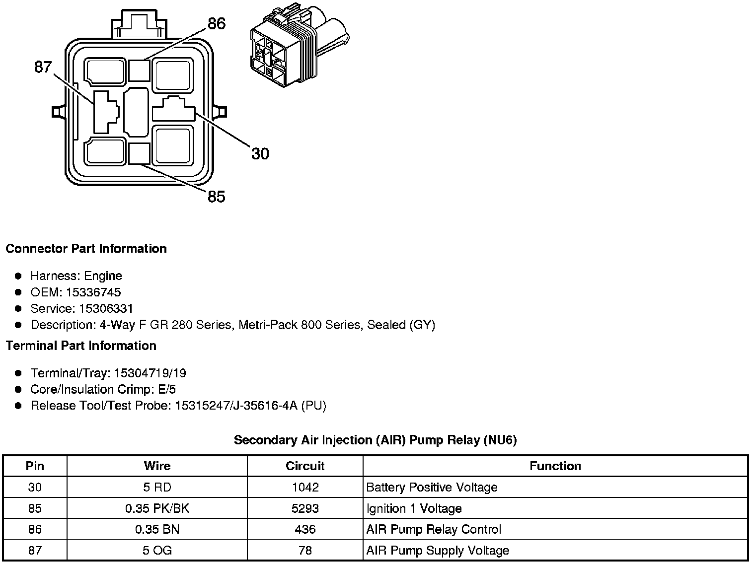 Secondary Air Injection (AIR) Pump Relay (NU6)