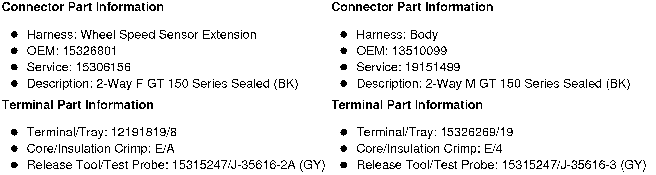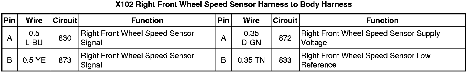 X102 Right Front Wheel Speed Sensor Harness to Body Harness