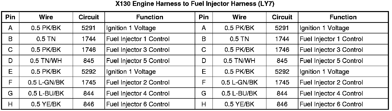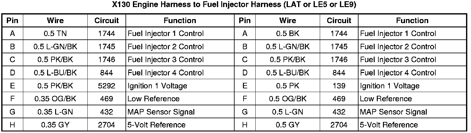 X130 Engine Harness to Fuel Injector Harness (LAT or LE5 or LE9)