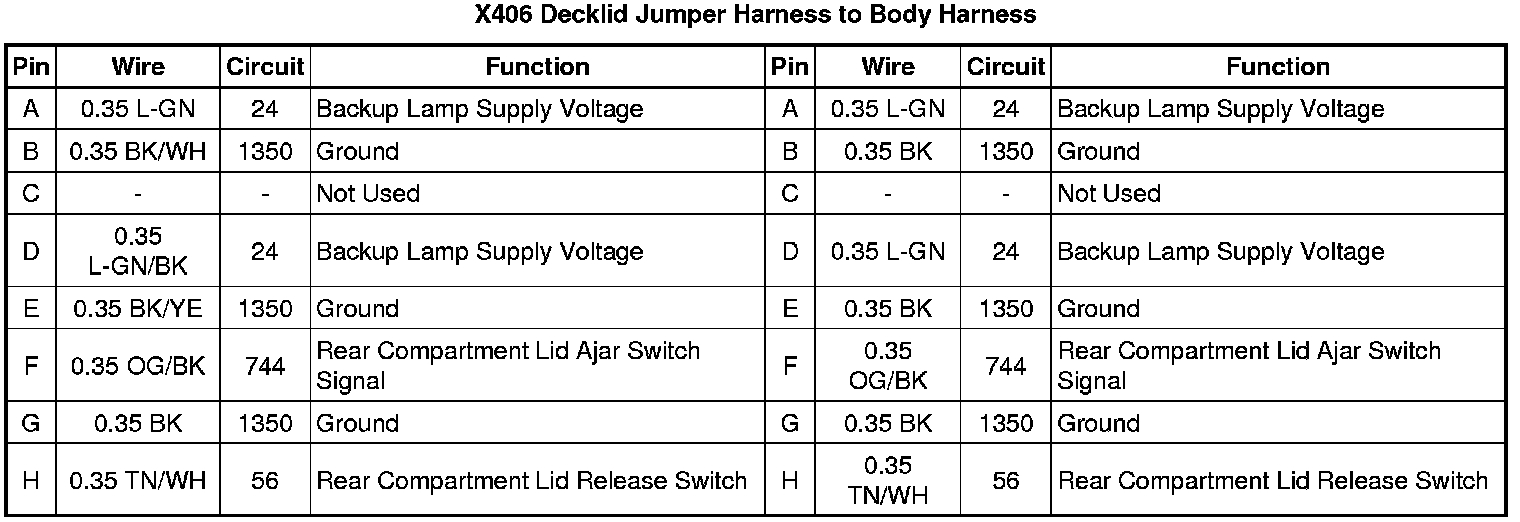 X406 Decklid Jumper Harness to Body Harness