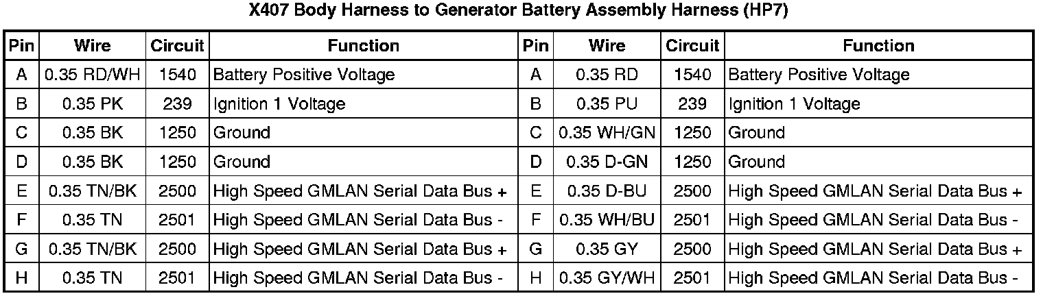 X407 Body Harness to Generator Battery Assembly Harness (HP7)