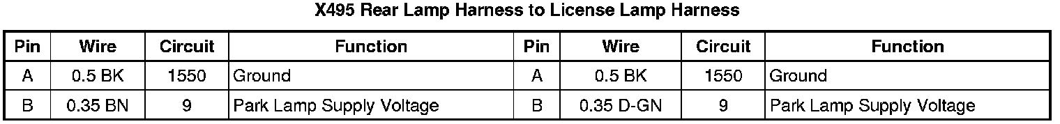 X495 Rear Lamp Harness to License Lamp Harness