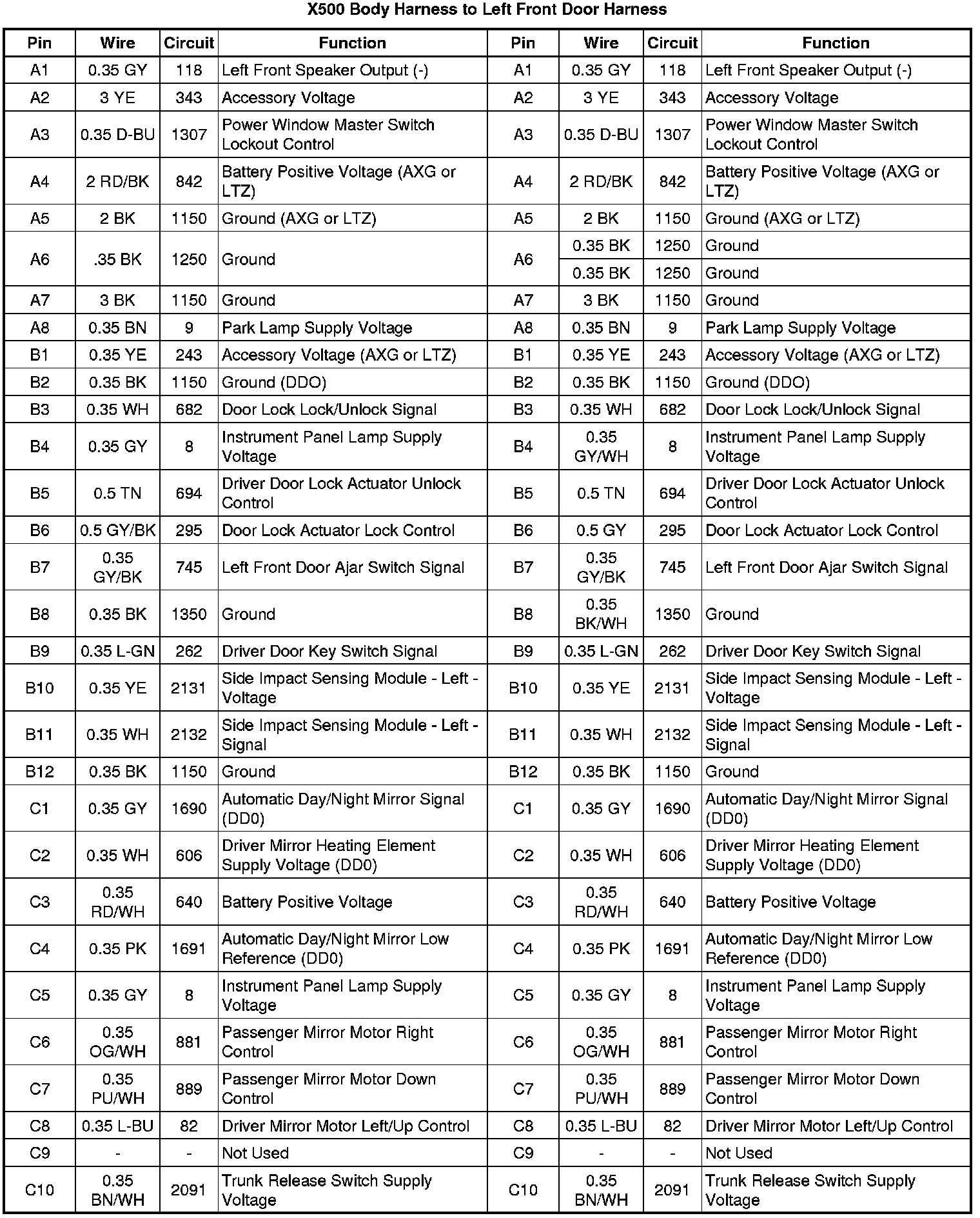 X500 Body Harness to Left Front Door Harness