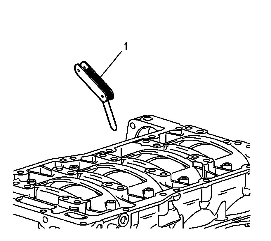 2. Install the EN-43966 - guides (1) into the connecting rod bolt holes. This protects the crankshaft journal during piston and connecting rod installation.