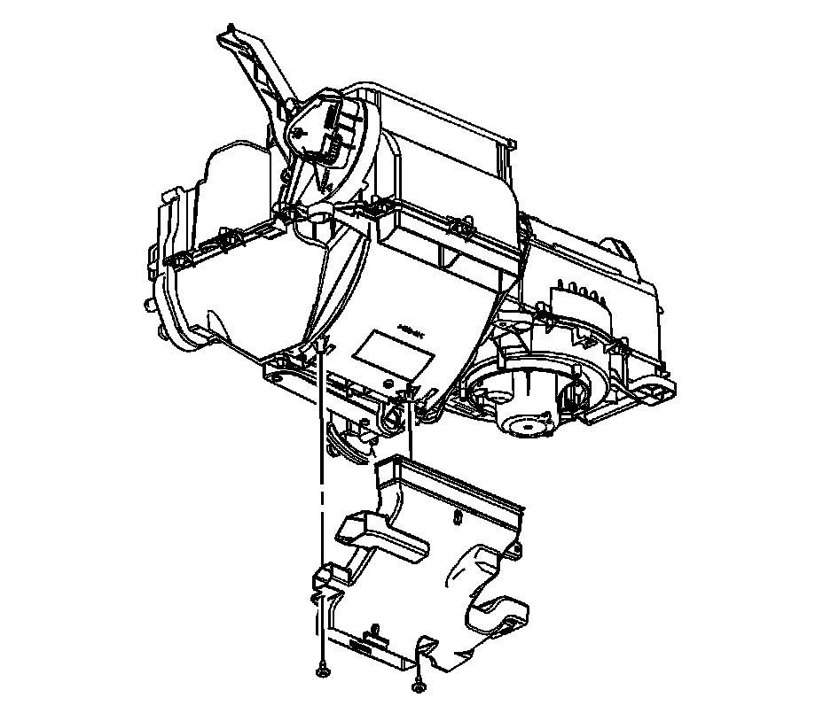 7. Install the lower HVAC module case screws and tighten to 1.5 Nm (13 lb in).