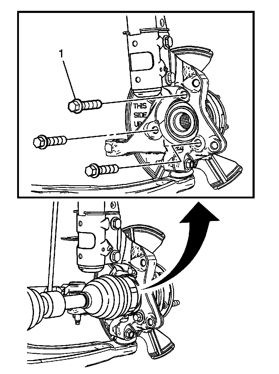 2. Install the wheel bearing/hub mounting bolts (1) and tighten to 115 Nm (85 lb ft).