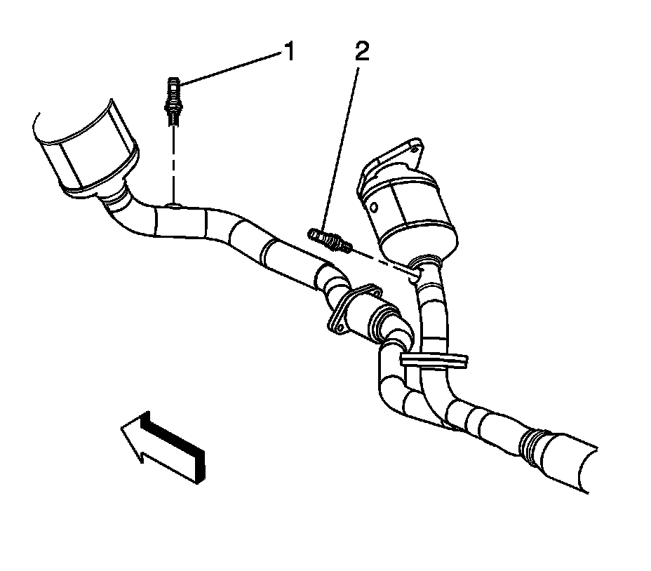 8. Install the lower right and left HO2S (1, 2) using the J 39194-B. Tighten the sensors to 42 Nm (31 lb ft).