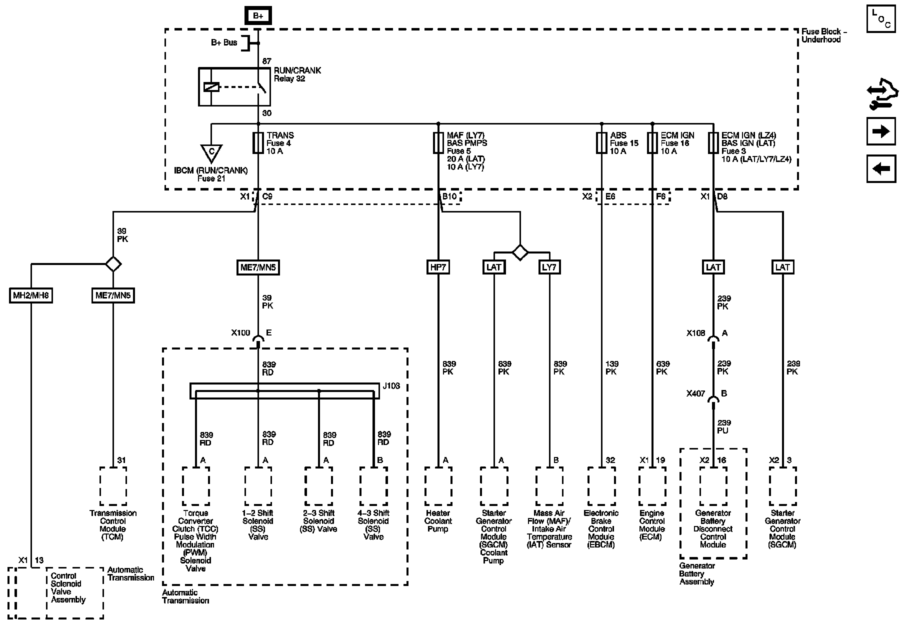 ABS, BAS IGN, BAS PMPS, ECM IGN, MAF, and TRANS Fuses