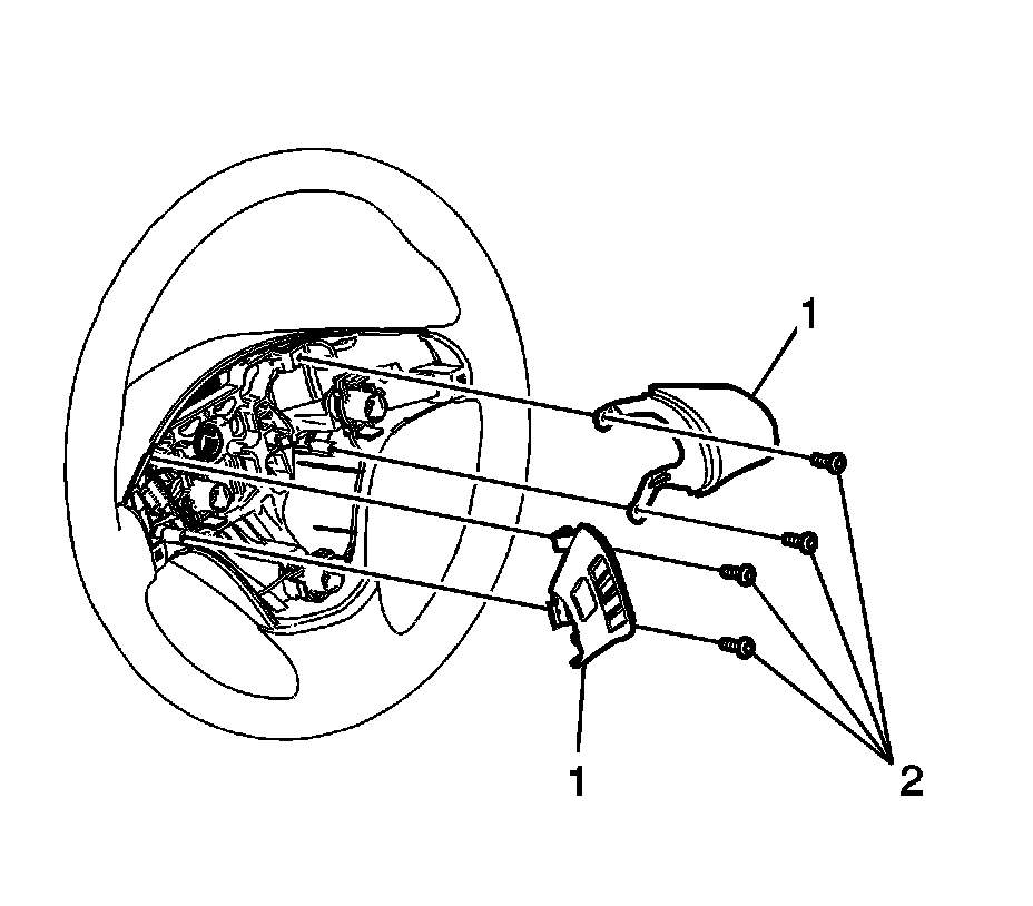 3. Install the steering wheel switch bezel bolts (2) and tighten to 2 Nm (18 lb in).