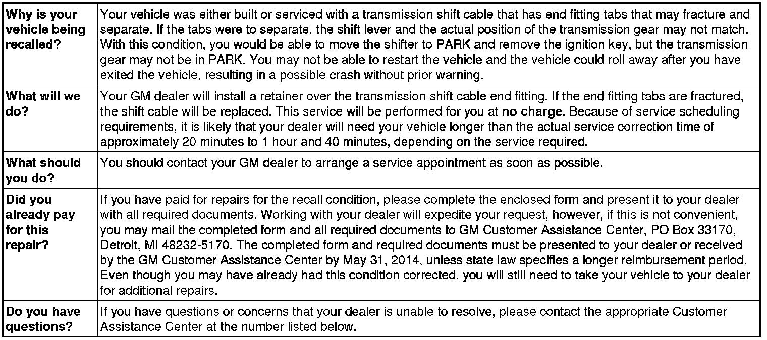 Dear General Motors Customer: