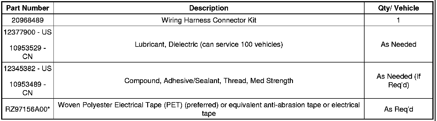 * To obtain the Woven Polyester Electrical Tape (PET), contact Kent Automotive at 1-888-YES-KENT (1-888-937-5368) and request the special order part number above.