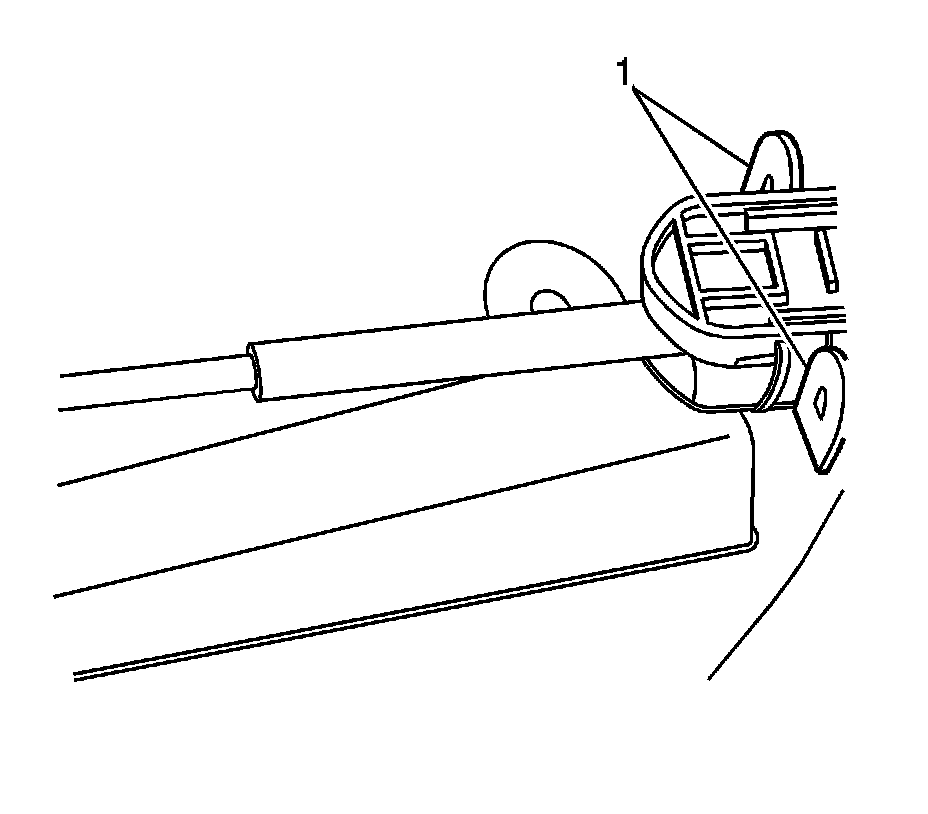 3. Press the locking tabs (1) inward in order to release the transaxle shift control cable from the cable bracket.