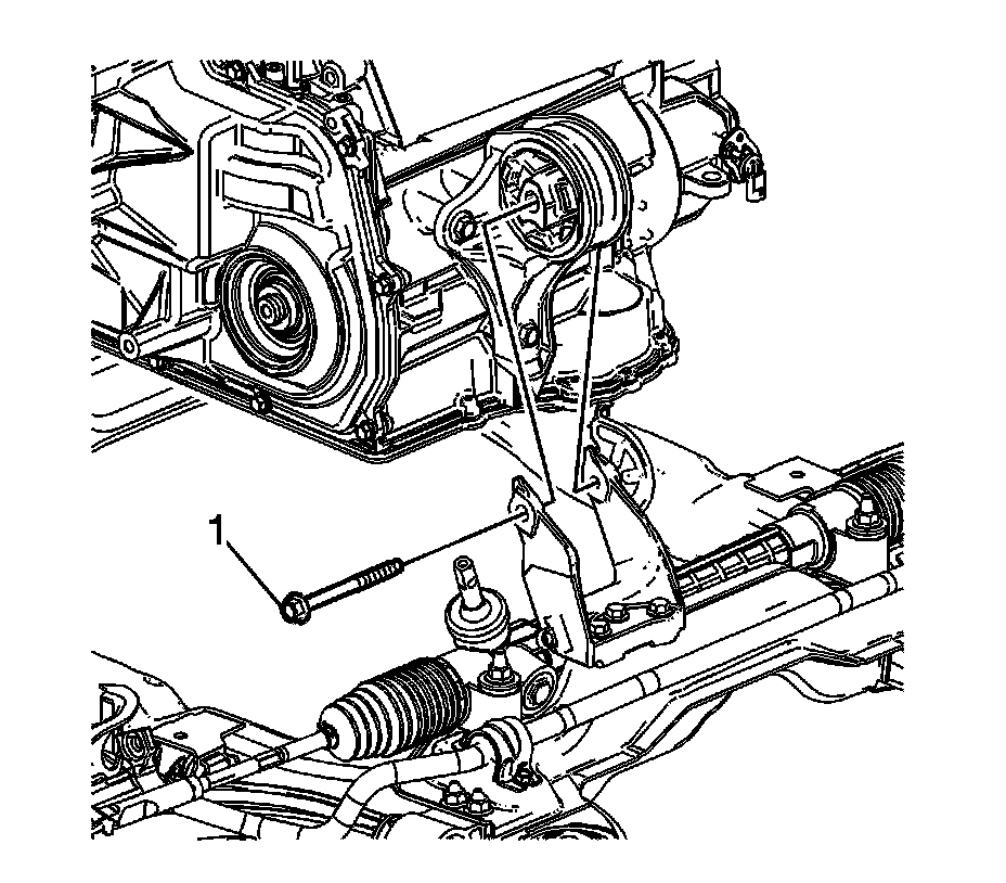 4. Remove the transmission mount to bracket through bolt (1).
